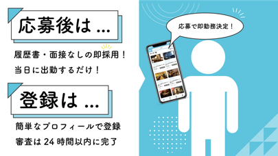 - 履歴書と面接は不要、アプリ内で採用が決定。企業に足を運ばず契約締結