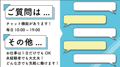 アプリストアでは「急な予定で勤務を事前連絡で休むことも可能です」と記載されています。そのため比較的気軽に応募できると言えるでしょう。