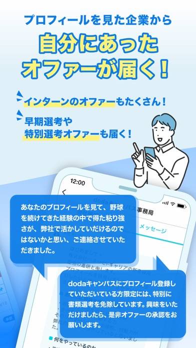 ベネッセが提供するオファー型就活アプリです。プロフィールにはあなたのこれまでの経験を、写真や動画を通してアピールできます。自己PR添削無料キャンペーンを活用して、自分らしいプロフィールを作りましょう。