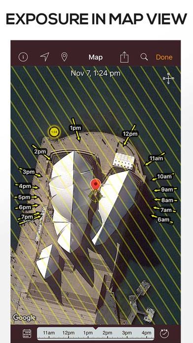 ▲カメラや地図アプリと連動するから、現在地から遠方までどこでも太陽の軌道が確認可能。