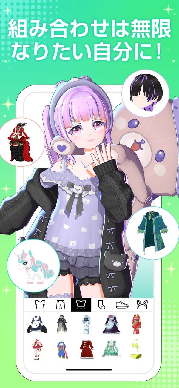 豊富な衣装やパーツで理想のアバターを作成