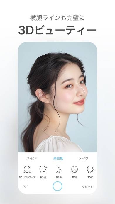 とにかくアプリが使いやすいです。直感的に操作出来るのと、リアルタイムで各種補正の数値を調整してから撮影できるのも魅力です。目をちょっとだけ大きくしたらどうなるか…ほうれい線を目立たなくしたらどうなるか…など、その場で補正を確認しつつ、顔の角度を変えながら撮影出来て、自然だけどちょっとだけキレイに撮りたい時にぴったりだと思います。フィルターの種類は多くて選ぶのが大変です。無料だと写真下にロゴが入ります。