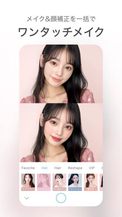 とにかくアプリが使いやすいです。直感的に操作出来るのと、リアルタイムで各種補正の数値を調整してから撮影できるのも魅力です。目をちょっとだけ大きくしたらどうなるか…ほうれい線を目立たなくしたらどうなるか…など、その場で補正を確認しつつ、顔の角度を変えながら撮影出来て、自然だけどちょっとだけキレイに撮りたい時にぴったりだと思います。フィルターの種類は多くて選ぶのが大変です。無料だと写真下にロゴが入ります。