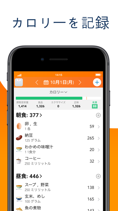 - 毎日の食事を記録。残りのカロリー摂取量を自動で計算してくれる