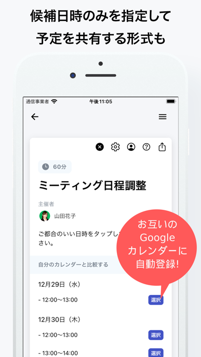 ▲Googleカレンダーと連携。予定を登録する、候補日程を仮押さえとして表示するなどの機能が使える。