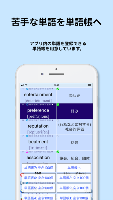 - 自分用の単語帳を作成できる。苦手な単語を重点的に学習