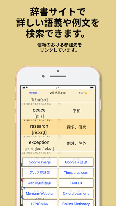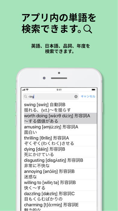 - 頻出単語を品詞ごとに整理して効率的に学習できる