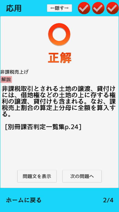 問題の他にも、苦手な問題にチェックマークを付ける機能や問題の詳しい解説もアリ。復習にも大いに役立つでしょう。