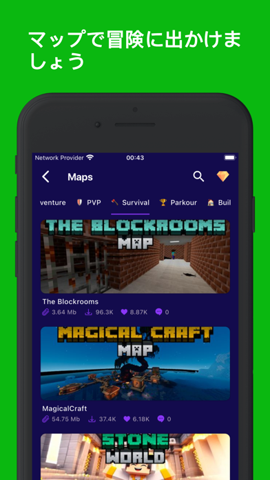 『Minecraft Pocket Edition』の作品を共有できるサービス。ダンジョン風やホラー調、スペースSF調など、マップだけでもさまざまなスタイルの作品が集まっています。ダウンロードは基本的に無料なので、あなたのサーバーをどんどん自由に彩れますよ。