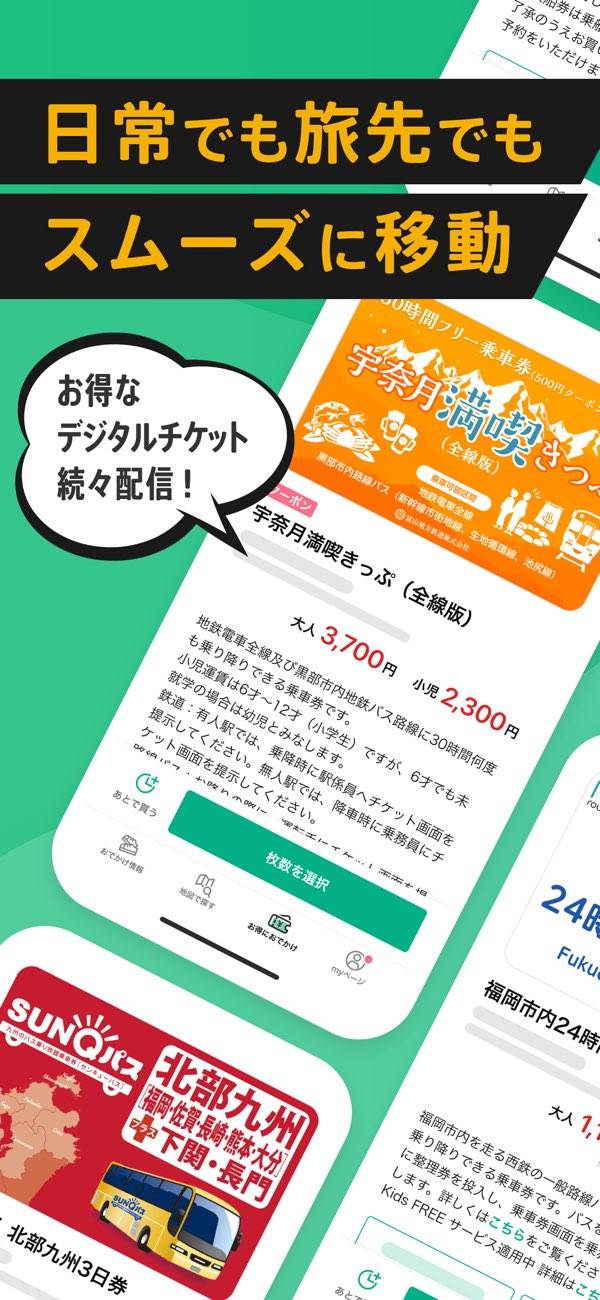 移動ルートの検索だけじゃなくて、クーポン券の利用や移動手段のチケット予約ができるのが便利。出かける前にこのアプリでおおまかなルートを確認しておけば、慣れない土地でも焦らずに楽しめると思う。情報量も充実していて実用性は十分。これから対応エリアが広がっていくのに期待!