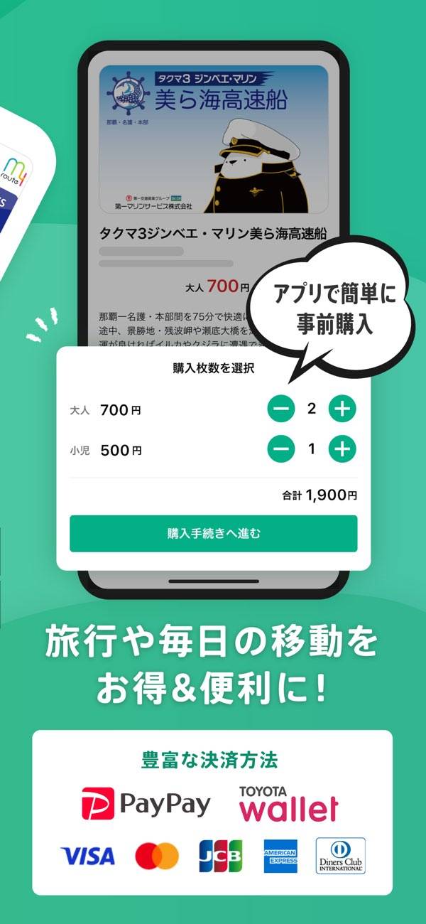 ▲移動手段の予約から支払いまでをアプリがサポート。慣れない場所へのお出かけも、安心して楽しめる。