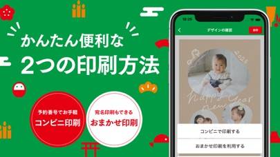 テンプレートを選び、写真やメッセージを入れてデザインするだけのシンプル操作。完成したデザインは、アプリから印刷用の予約番号を発行してセブンイレブンのマルチコピー機で印刷できます。1回最大30枚まで対応していて、混雑する印刷所に行かなくてもすぐに年賀状が手に入るのが魅力です。
