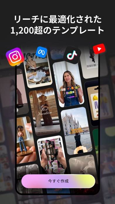 SNS用の動画作成の入門にピッタリのアプリです。Instagram(インスタグラム、インスタ)、TikTokを中心にさまざまなSNSに対応。