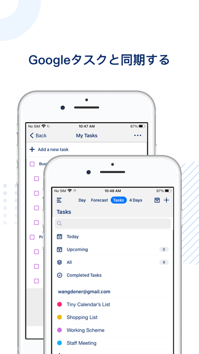 Google Calenderと同期でき、使い心地はよりシンプル。直感的なデザインで、スムーズに予定の登録や管理ができます。またオフラインでも使用可能。オフライン中に追加した予定は次のオンライン時にGoogle Calenderに同期されます。