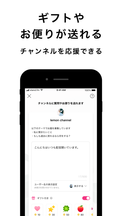 リスナーは生配信に参加してコメントやアイテムで交流を楽しめます。収録済みのラジオ番組を、好きなタイミングで聴けるのもいいですね。