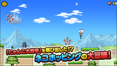 - ネコがホッピングしながら崖を飛び越える、横スクロールアクション