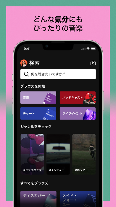 『Spotify』は1億曲以上の楽曲を配信しています。ハロプロや山下達郎などのサブスク未解禁楽曲の視聴はできませんが、ほとんどのジャンルやアーティストを網羅しており、「聴きたい曲が見つからない」と感じることはまずありません。