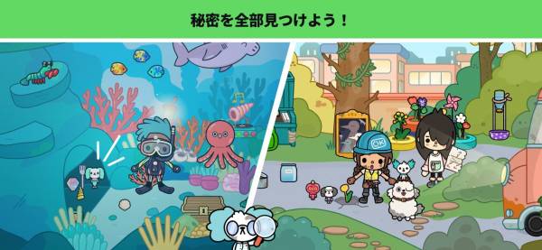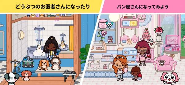 この世界ならなんでもOK、自由度の高い社会教育。お医者さんの髪を緑色にしたり、店員にピザを食べさせたりしてもいいんです。