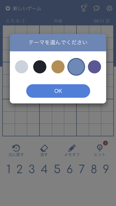 クラシックなナンプレが収録されているアプリです。すべての空欄のマスを埋められたらクリア。縦と横、各9マスの数字を見ながら、当てはまる数字を推理していってください。