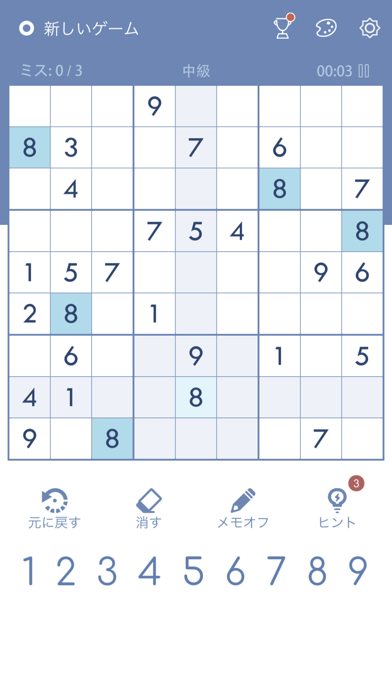 - 王道ルールを収録。シンプルな操作で遊べるナンプレアプリ