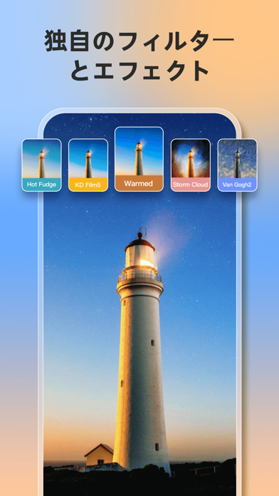 | フィルターの種類 | ポップ、フィルム、映画、風景など |