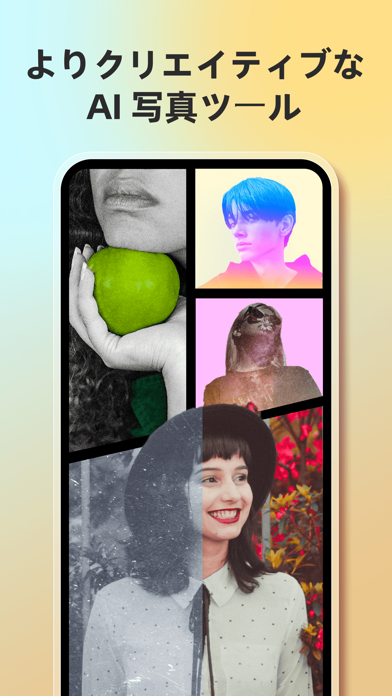 プロが制作したような洗練された美しい画像・写真へと仕上げられる編集アプリ。定番のフィルター機能のほか、コラージュ機能、ぼかし、AI機能など多数の加工ツールがそろっています。さまざまな機能を活用して、プロ顔負けの1枚に仕上げられますよ。