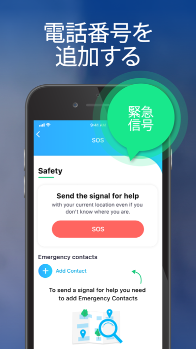 緊急事態に遭遇した際には、SOS機能が役立ちます。この機能を使えば、現在地情報付きで助けを求めることが可能。子供が迷子になったりトラブルに巻き込まれたりしたときでも、しっかりと場所を把握できるのは嬉しいところです。