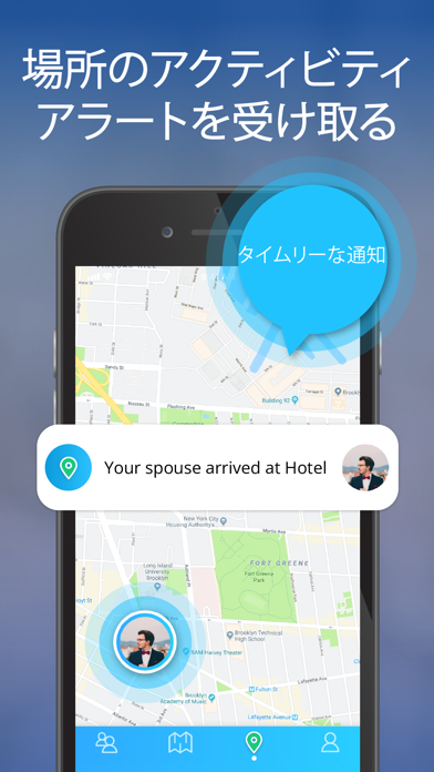 離れていてもどこにいるのか把握できるGPSアプリ。登録した相手がマップ上に表示され、どの辺りにいるのかがすぐにわかります。子供の帰りが遅いときやショッピングモールで迷子になったときなど、さまざまなシーンで役に立つでしょう。
