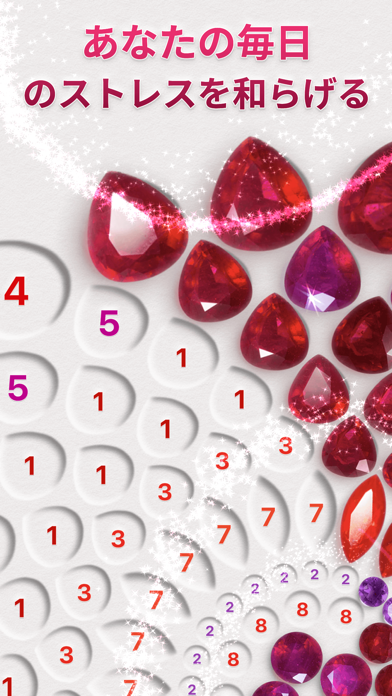 塗り絵を開始すると、宝石と番号が表示されます。番号が書かれている箇所をタップして、宝石を置いていきましょう。塗り終わったら次の宝石が表示されます。
