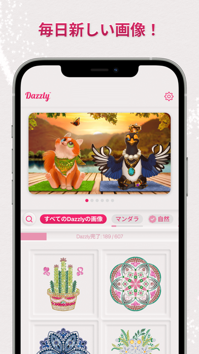 絵の具の代わりに宝石を当てはめていく、個性的な塗り絵アプリ。アクセサリーやマンダラ模様、ファッションなどの絵を、宝石でキラキラの1枚に仕上げられます。