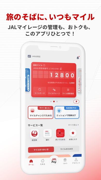 JALのマイレージサービスがより快適に利用できるアプリです。デジタル会員証の表示からJAL Pay決済、マイル管理まで、アプリ1つで完結。NEOBANKとの連携で銀行機能も利用できます。普段使いからマイル獲得、特典交換まで、JALマイルの貯めやすさ、使いやすさが格段に上がりますよ。