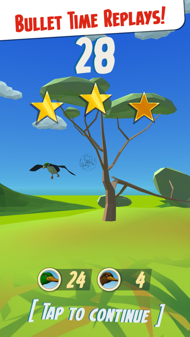 飛んでくる鴨をタイミング良くハンティングするゲームです。標準は自動で行ってくれるので、自分はタップするだけと操作が簡単。連続してパーフェクトが出るとボーナスとしてコインが貰えます。コインは、新しい狩猟銃やステージ開放に使用。