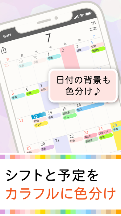 シフトなどの予定をまとめてこの1本で管理できるカレンダーアプリ。ワンタッチで予定を反映できるシンプル設計で、使い方をすぐ覚えられるのが特長です。