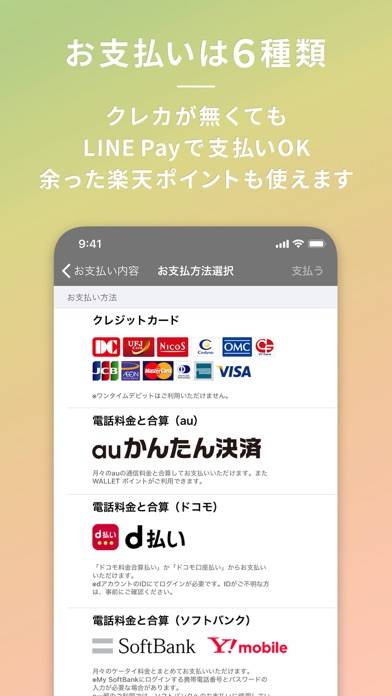 - クレジットカードやキャリア決済など、6種類の支払い方法が選べる