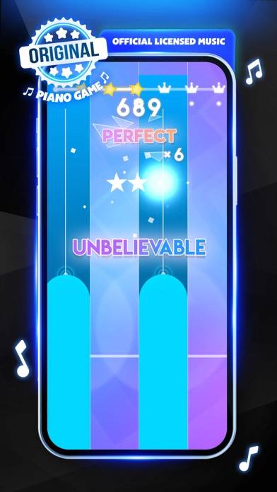 4つのレーンに流れてくるノーツをタップする、シンプルなリズムゲーム。1ミスで即終了というルールのもと、エンドレスでハイスコアを目指すシビアな仕様が特徴です。有名楽曲も多数収録されていますが、いずれも音源は非公式。かつ楽曲はゲームが進むたび速度が上がるので、曲よりアクションを楽しみたい人向けといえます。