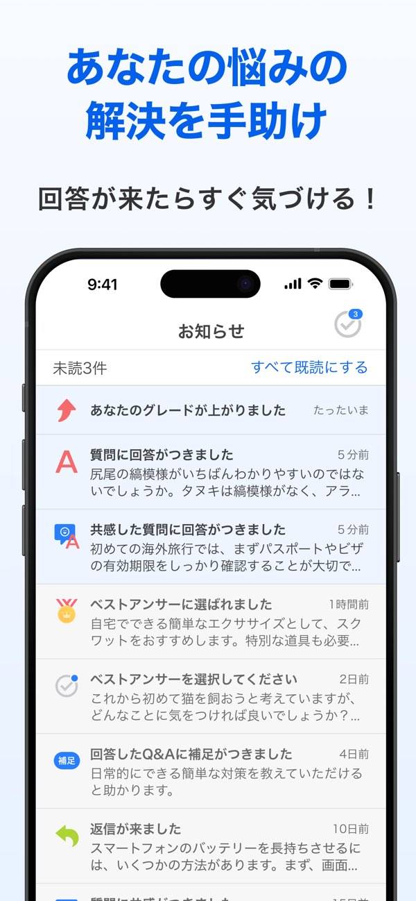 悩み事や質問を簡単に質問できるアプリ