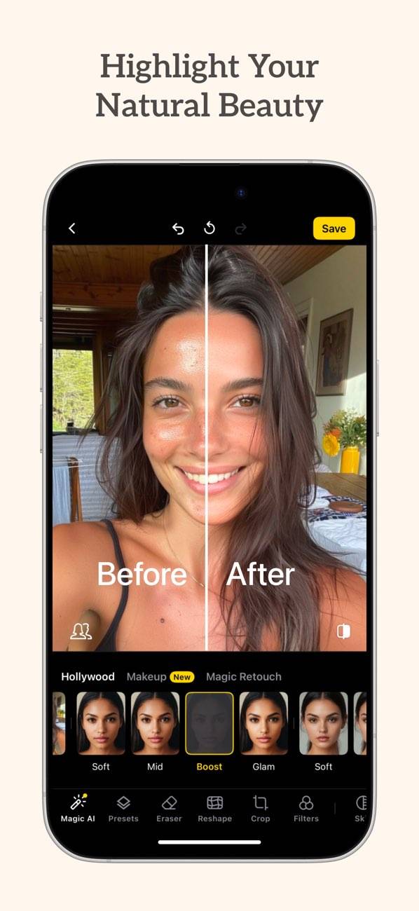 - AIが自動で美顔補正をしてくれる高画質な写真加工アプリ