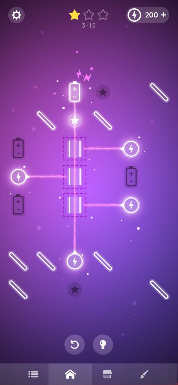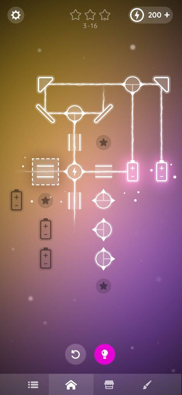 ▲ギミックを操作してレーザーの向きを制御。レーザーがすべての電池に到達すればクリア。