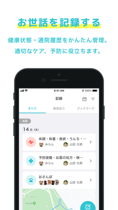 - 愛犬の健康状態や通院履歴、お世話の記録を一元管理