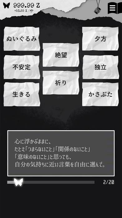 太宰治や夏目漱石、ヘルマンヘッセ等の名作の名言をタップしてEGOというポイントを貯めて、書籍のページをめくり、もらえるポイントを増やしていく放置系クリッカーゲーム。ストーリーが独特で、ただのクリッカーゲームではなく、ストーリーを進めていく毎に自分自身の性格分析もできて、それが面白い。心理学や性格診断などが好きな人にオススメです。