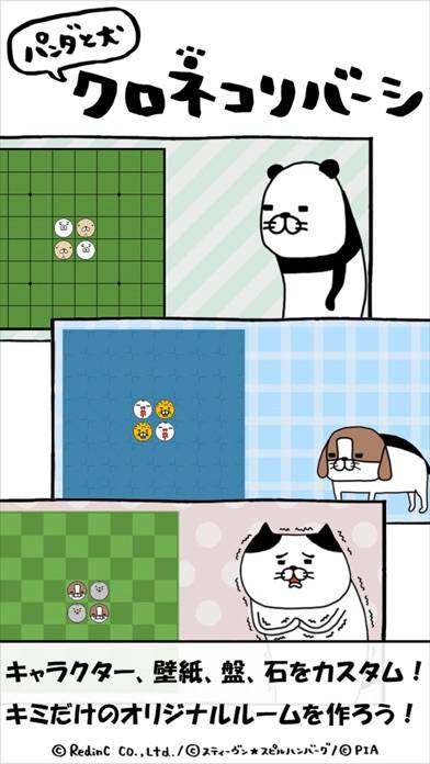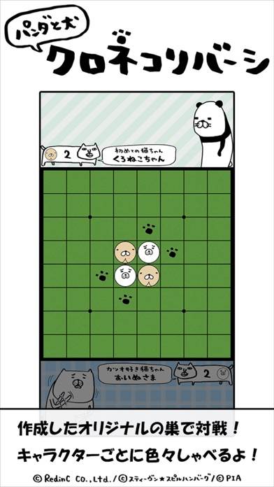SNSで人気のマンガ『パンダと犬』のリバーシゲーム。特徴はなんといっても、リバーシの絵柄。ゆるいタッチで描かれた白黒の石と、対戦キャラがとてもかわいらしいです。