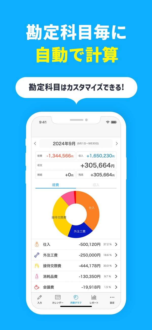 - 仕訳をグラフにして、費目の割合を可視化。収支のバランス改善に役立つ