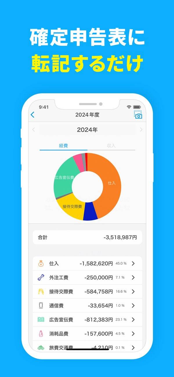 - 仕訳をグラフにして、費目の割合を可視化。収支のバランス改善に役立つ
