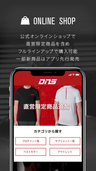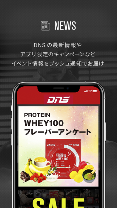 - DNS公式アプリ。プロテイン、トレーニング情報が手に入れられる
