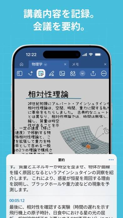 手書きの勉強ノートやプリントを、まとめてデジタルで持ち歩けるノートアプリです。ペンで書いた文字を動かしたり、後から大きさや色を変えたりできて、ノートの作り直しもスムーズ。PDFに書き込みながら復習したり、検索で見返したい場所をすぐ出したりできるので、試験前の暗記や整理がぐっと楽になりますよ。