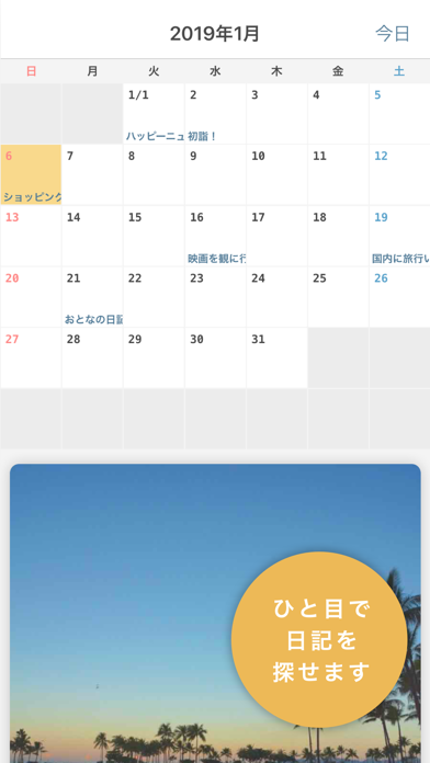 ▲カレンダーでの表示もあり。日付をタップすればその日の日記が見られる。