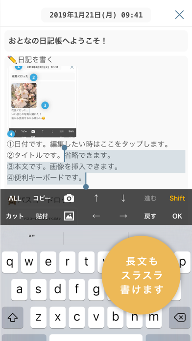 - シンプルな日記帳アプリ。写真を複数枚添付できる