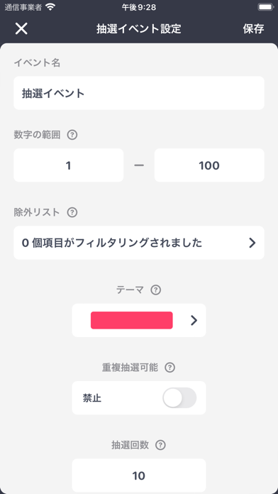 - 抽選範囲は数字や自由テキストといろんな状況に対応