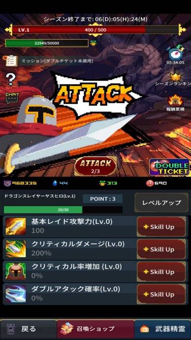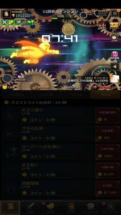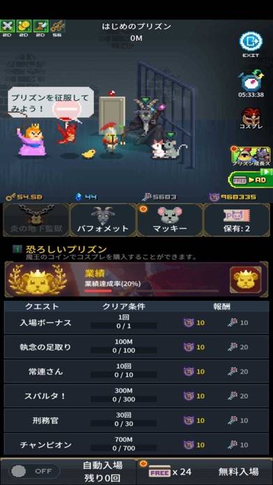 本作の基本的な遊び方は”放置”。ヤスヒロが勝手に戦ってくれるので、プレイヤーは強化に専念できます。コスプレ衣装の購入には魔王コインが必要なのですが、こちらは文字通り魔王を倒さなければならないため、簡単には手に入りません。その分効果は強力です。