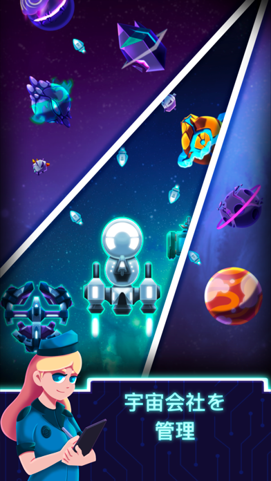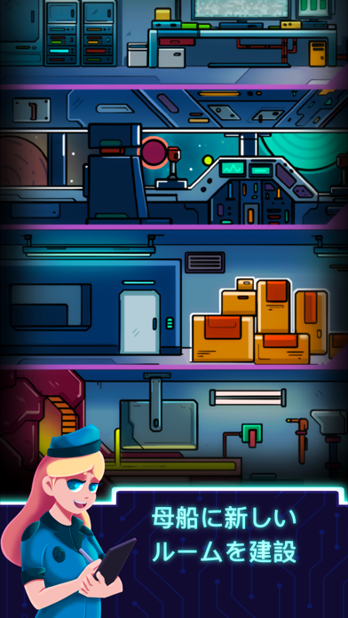 宇宙の各惑星で鉱石を採掘し、販売することでお金を稼ぐゲームです。惑星や母艦などをアップグレードすることで、効率的にお金を稼ぐことが可能。さらに遊んでいない時間も採掘を続けてくれるので、スキマ時間だけでも楽しめます。